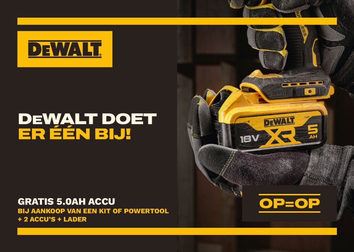 Ontvang een gratis extra accu bij registratie bij DeWalt.