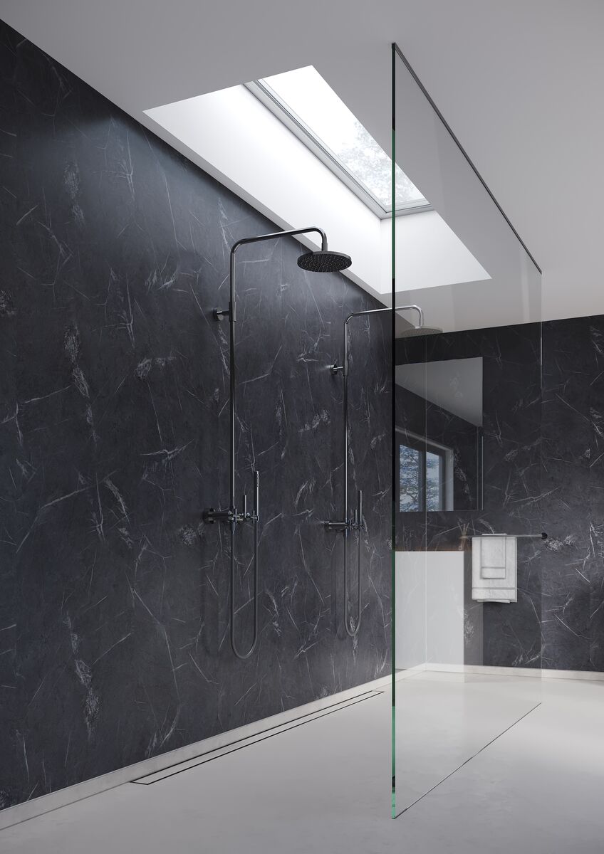 Het Fibo Marble Wandpaneel M00 TG2 Glad Black Marble is een elegant wandpaneel met een luxe zwarte marmeruitstraling voor een moderne en stijlvolle afwerking. Dankzij het gladde oppervlak en het TG2-kliksysteem is het paneel eenvoudig en waterdicht te monteren, ideaal voor badkamers, toiletten en keukens. Het paneel heeft een afmeting van 2400 x 620 x 10 mm en wordt geleverd per 2 panelen, waarmee het een strak en onderhoudsvriendelijk alternatief biedt voor traditioneel tegelwerk.