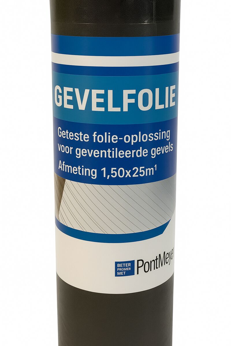 De PontMeyer Gevelfolie Economic Plus is een dampopen folie voor betrouwbare gevelafdichting. Met een breedte van 1500 mm en een lengte van 25 meter per rol is de folie eenvoudig te verwerken en geschikt voor diverse gevelconstructies. De folie beschermt de onderliggende constructie tegen waterindringing terwijl vocht van binnenuit kan ontsnappen, waardoor condensatie wordt voorkomen. Dankzij de twee zelfklevende randen en hoge kleefkracht is een luchtdichte en waterkerende aansluiting eenvoudig te realiseren. Ideaal voor renovatie- en nieuwbouwprojecten waar een duurzame en efficiënte afdichting van de gevel gewenst is.